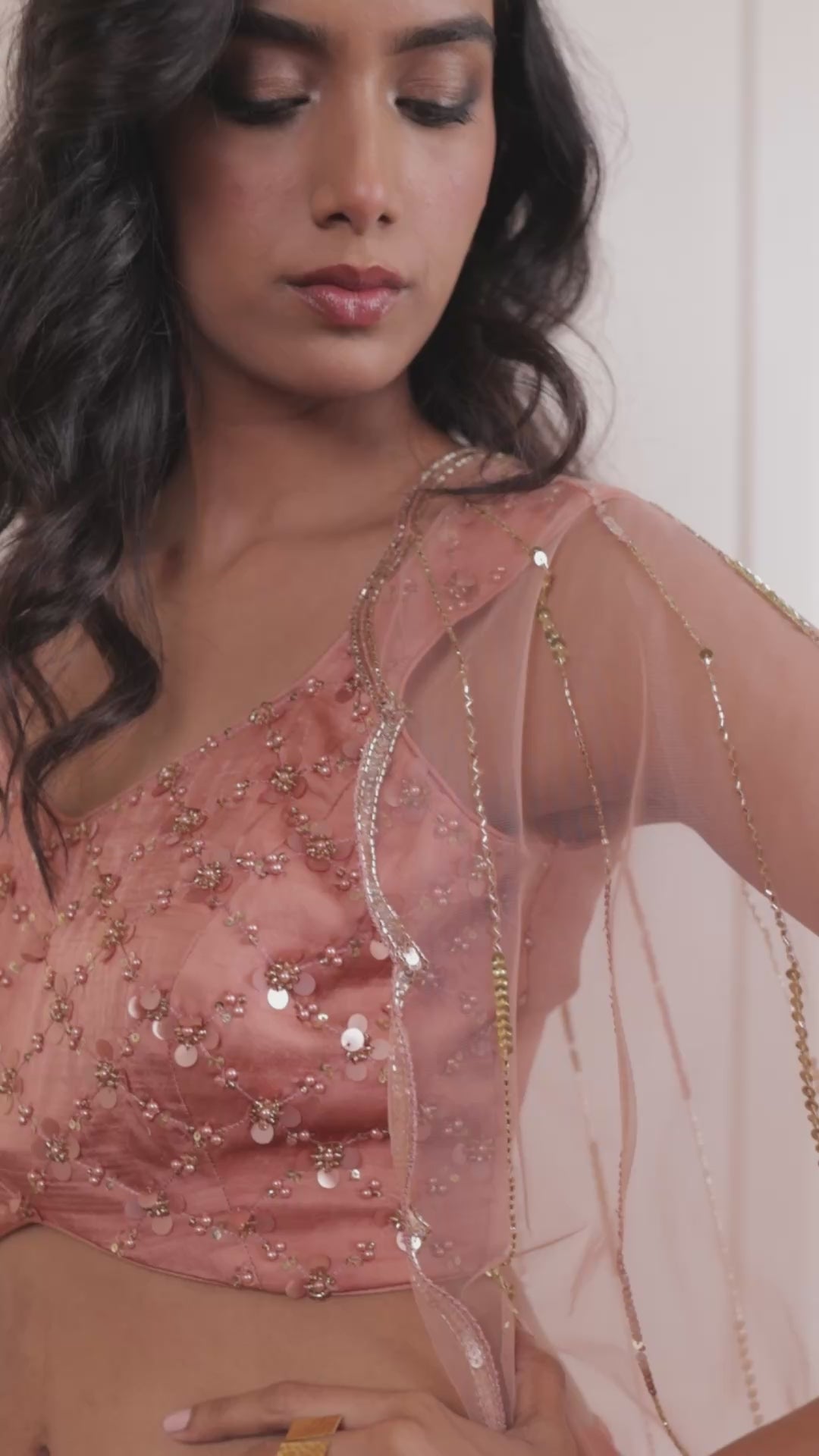 Crimson Veil by Cascades: Embroidered Cape set with pants