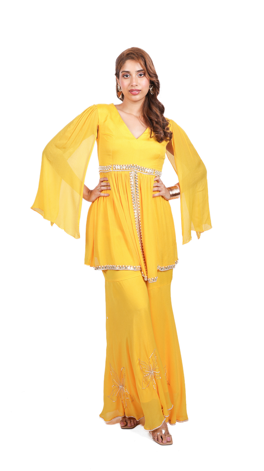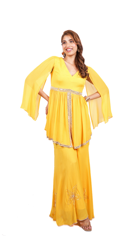 Solaya by Cascades: Yellow Embroidered Co-ord set