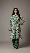 Redefine modern elegance with Aurevine from Estonia’s Efflorescence collection, crafted in a lustrous satin finish with timeless green floral motifs over a soft ivory canvas. The set features a structured high-neck tunic with refined pleat detailing, full-length sleeves, and a flowing silhouette paired with coordinated bottoms for effortless sophistication. Designed to strike the perfect balance between classic grace and contemporary ease, Aurevine transitions seamlessly from day gatherings to evening affairs. A statement in luxury, this ensemble celebrates the poetry of blooming flora with understated refinement.